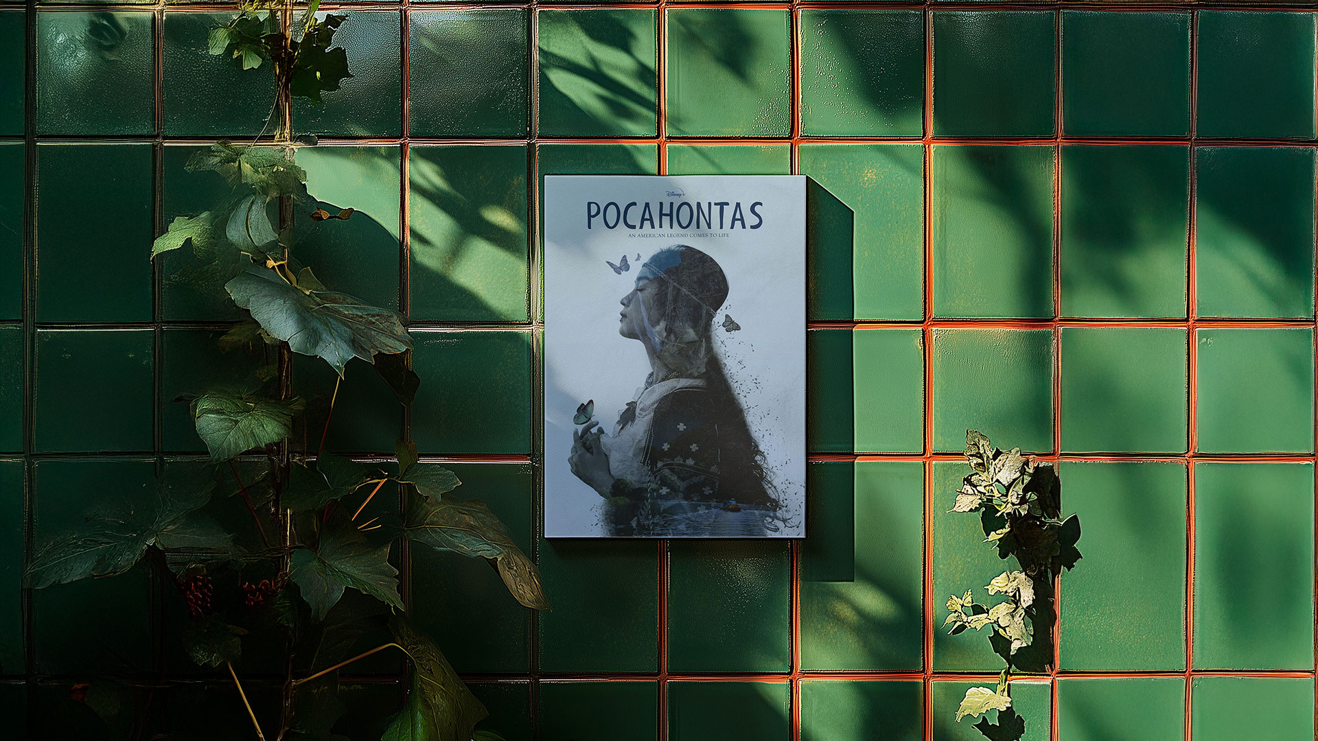 POCAHONTAS X DISNEY PLUS Cliente Disney Fecha 2022 Diseño de póster para la versión live action de Pocahontas. Se buscó una estética cinematográfica y natural, destacando la conexión con la cultura y la naturaleza.